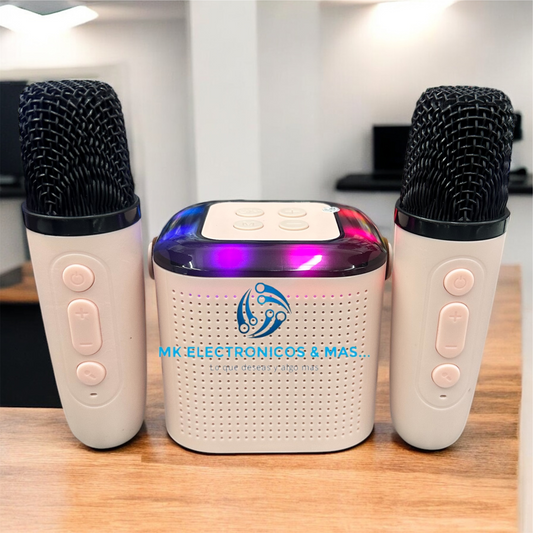 Mini Bocina de karaoke portátil Bluetooth con 2 micrófonos inalámbricos para fiestas en casa, reuniones, al aire libre, habla
