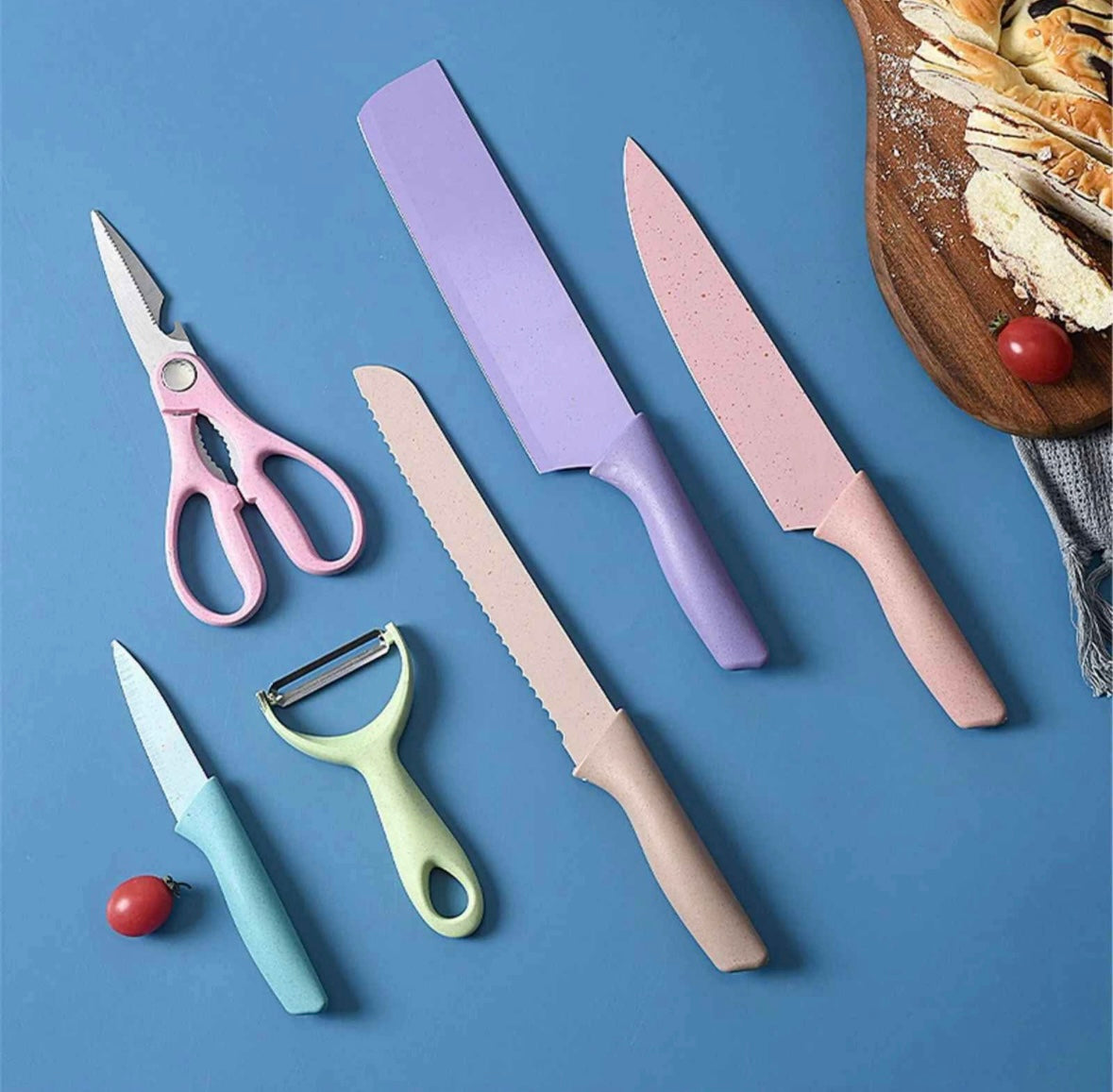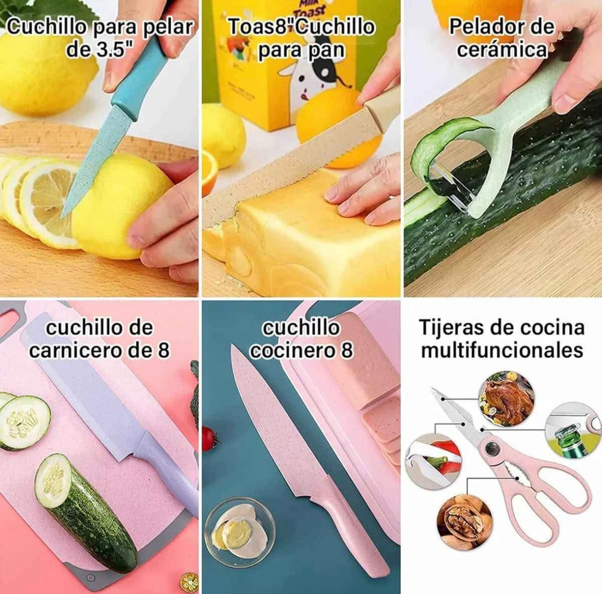 Este set de cuchillos para chef es perfecto para cualquier cocina. Incluye 4 cuchillos, una tijera y una bandeja para picar, además de un práctico pelador. Fabricados con materiales de alta calidad y duraderos, estos cuchillos te permitirán cortar, rebanar y picar de forma fácil y precisa. ¡Haz de la cocina una tarea más sencilla con nuestro set!
